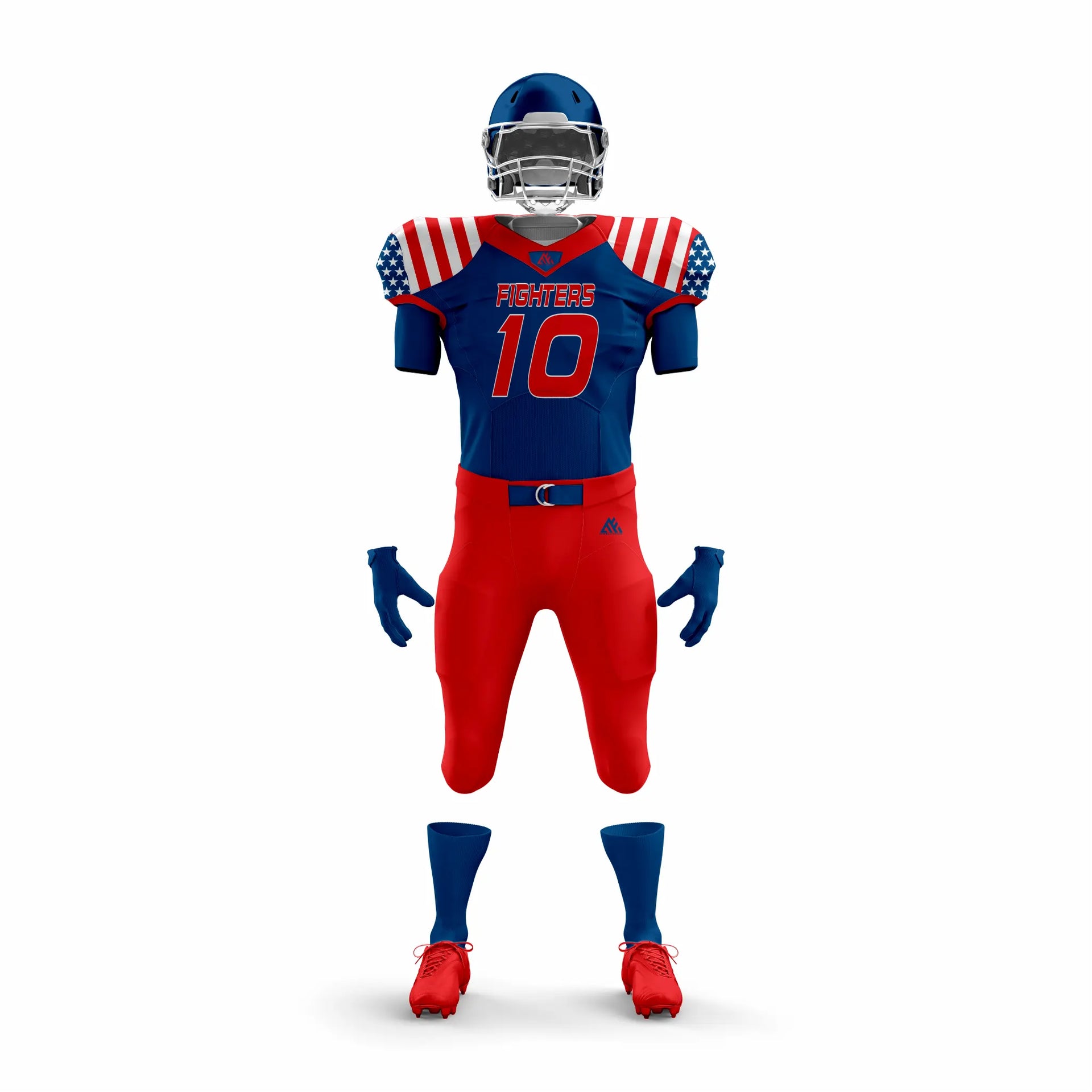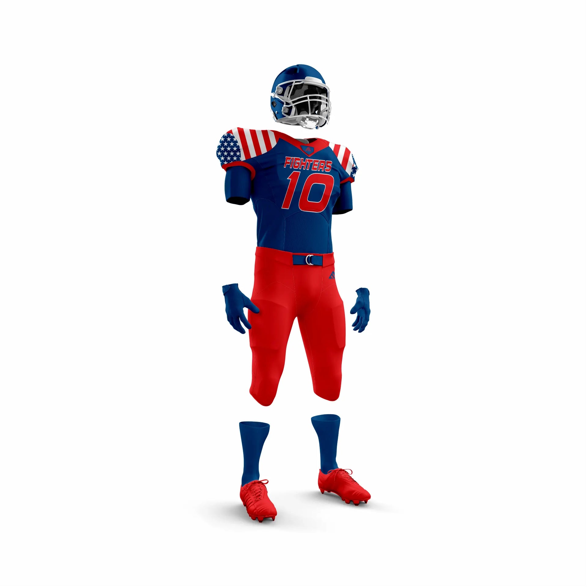 The Fighter Blue American Football Uniform is engineered for athletes who demand power, comfort, and style on game day. Made with moisture-wicking, breathable polyester, this uniform keeps players cool under pressure. Reinforced stitching ensures strength and durability through every tackle, while the bold fighter blue design gives your team a sharp, commanding presence on the field.