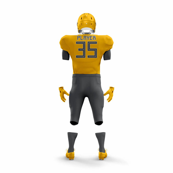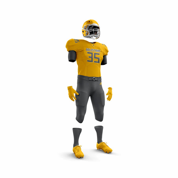 The Gold Strike American Football Uniform delivers unmatched durability, comfort, and style for athletes ready to dominate the game. Built with moisture-wicking, breathable polyester, it keeps players cool and dry under pressure. Reinforced stitching ensures long-lasting toughness, while the bold gold design makes your team shine on the field.