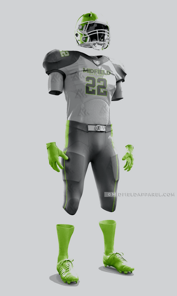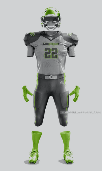 The Midfield Grey American Football Uniform is designed for players who value strength, comfort, and modern style. Made with moisture-wicking, breathable polyester, this uniform keeps athletes cool and dry in every quarter. Reinforced stitching ensures lasting durability, while the sleek grey colorway gives your team a professional and commanding look on the field.