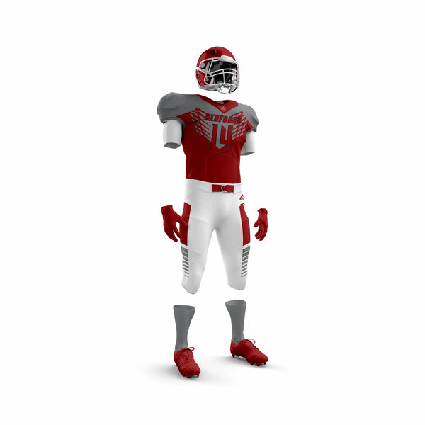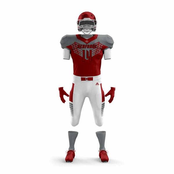 Unleash power and confidence with the Red Force American Football Uniform, crafted for athletes who demand durability, comfort, and bold style. Made with moisture-wicking, breathable polyester, this uniform keeps players cool and dry under pressure. Reinforced stitching ensures lasting strength, while the striking red design gives your team a fierce presence on the field.