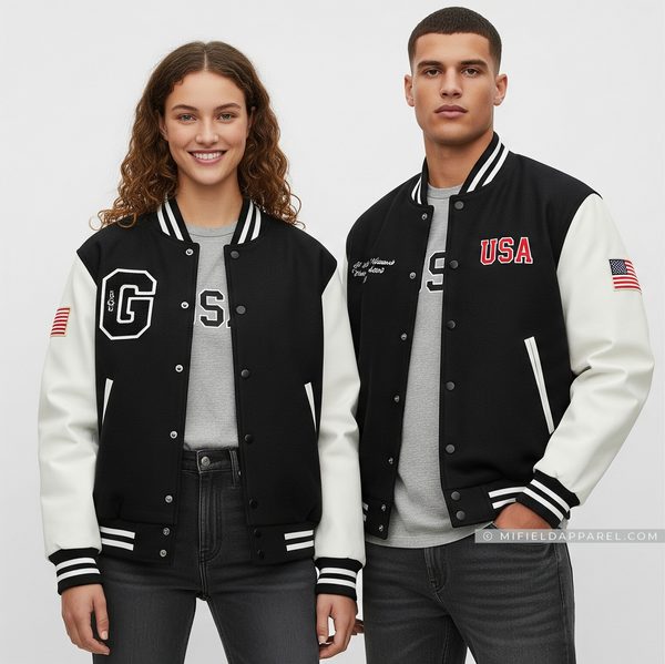 The Classic Black Wool Leather Varsity Jacket blends timeless American style with premium materials. Crafted from soft black wool and real cowhide leather sleeves, it delivers both durability and luxury. Embroidered varsity letters and USA...